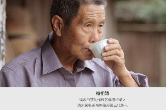 梅相靖在家柏柳村从小继承父辈梅毓芳、梅毓厚、梅毓淮学习制作白茶,为福鼎白茶制作技艺的第三代传人,已有65岁高龄,白茶手工制作主要传承给本族系子孙梅传銮、梅传斌、梅传浩、梅传永、梅传笔等人。