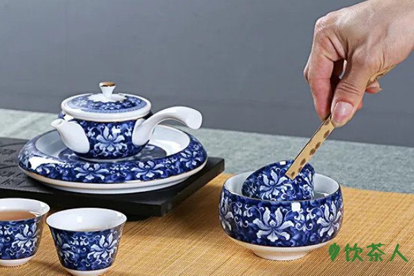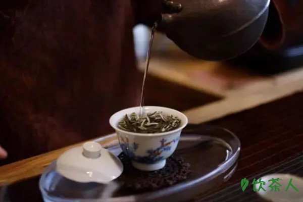 福鼎白茶煮茶饮用之前,先将茶叶放入白瓷盖碗冲泡2次,茶荷中的茶叶投入白瓷盖碗,沿着盖碗边缘注,注满水等待3秒立即将水倒出,然后冲入注水再次倒水,茶叶煮之前在盖碗中冲泡主要是为了清洗茶叶表面的杂质,使其更容易煮饮。