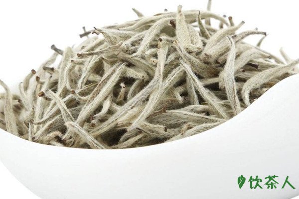 福鼎白茶在制茶的过程中没有经过杀青和揉捻,成品茶叶的外形完整,基本能鲜叶的造型且条索肥壮,整个插身表面都被茶毫包裹,茶色从远处看起来如银似雪,也有灰绿色或是褐色的成品茶叶,茶色的不同与茶叶品种有关。