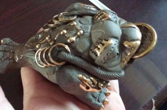4、金蟾:金蟾寓意招财进宝,有些金蟾口含钱币,寓意“口吐金钱”,口中有钱币的金蟾在摆放时,头应该朝里不宜朝外,意思是向家中吐露钱财。而口中没有钱币的金蟾头要超斜外方,以免冲撞门神。