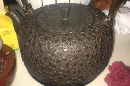 另外,想要断定一把壶是不是日本铁壶,还可以听敲击的声音是否清脆空灵(这个得特别有经验的人才行啊)。还有一个笨办法是留点水让壶生锈,一夜过后,日本铁壶会有斑驳的锈迹,而中国铁壶已经锈的没法看了。