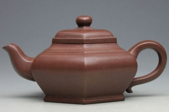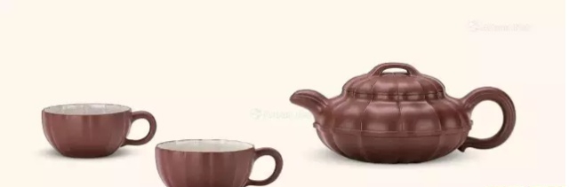 壶式由线云壶变化而来,桥钮与菱花瓣相融,嘴作棱花式,胥出自然,把弯曲恰体,端握方便,壶腹中央束一方腰带,整个菱线自壶顶至壶底相交成一点,分毫不差。壶盖六面可置换,十分严密。