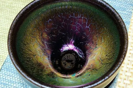 2、建盏表面的物质在茶汤的浸润下,吸收了茶垢,在光的照耀下,表面形成了一个折射面,从而产生了和之前不一样的光泽。