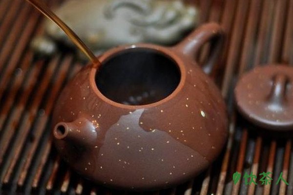 紫砂壶有双层气孔结构,胎体特殊,冲泡茶叶时能够吸附茶汤,让原本的胎体发生变化,能够散发正在冲泡的茶香,因而专壶专用,一壶事一茶的说法,开壶的过程中根据自己的饮茶喜好为紫砂壶定味,把要冲泡的干茶叶放在风干后的茶壶并静置6小时。