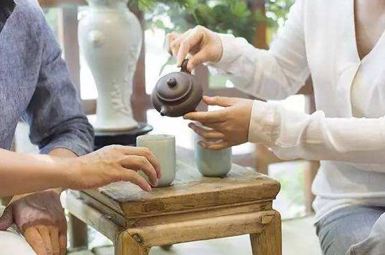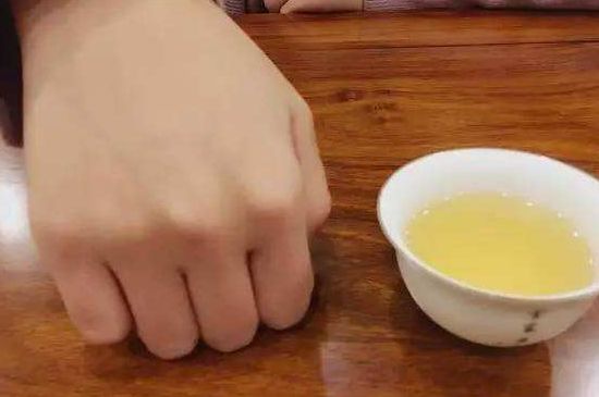 3、长辈给晚辈倒茶:长辈给你倒茶的时候,你就要把右手的五指合成一个拳形,用五只手指同时敲桌面,意思是五体投地为倒茶之人行叩拜之礼。一般敲三下即可,但是遇到自己特别尊重的人,可以敲九下,意思相当于三跪九叩。