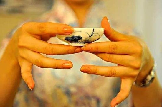 按照我国人民的传统习惯,只要两手不残废,都是用双手给客人端茶的。但是,现在有的年青人不懂得这个规矩,用一只手把茶递给客人了事。双手端茶也要很注意,对有杯耳的茶杯,通常是用一只手抓住杯耳,另一只手托住杯底,把茶端给客人。