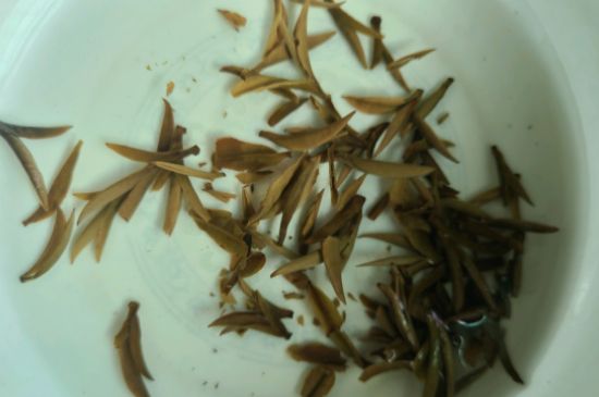 1、鉴赏香茗——用茶则从茶藏中取出一壶量的茶叶,置于赏茶盘中,鉴赏。