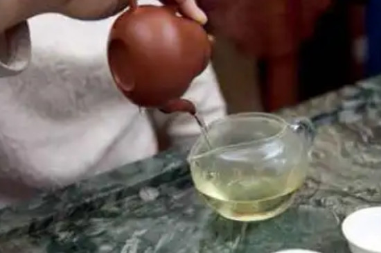 通常冲泡武夷岩茶要一分到一分半钟,在此其间我们不妨先斟出一杯来观其汤色的浓度,然后在返回壶内,我们称之为玉液回壶,这时茶就冲泡好了。