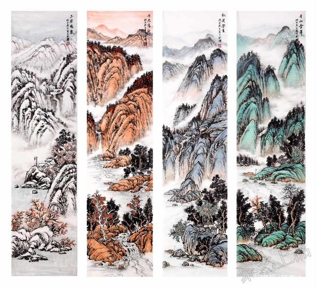 每个季节有每个季节的美,“春风贺喜,夏木滴翠,秋色清华,冬雪祥瑞”刘辉老师的《春夏秋冬》国画四条屏将一年四季之美景收纳其中,通过四幅意境高远空灵的山水表达,给人极佳的艺术享受。在茶室内挂上此幅佳作,领悟其中的山水奥妙。