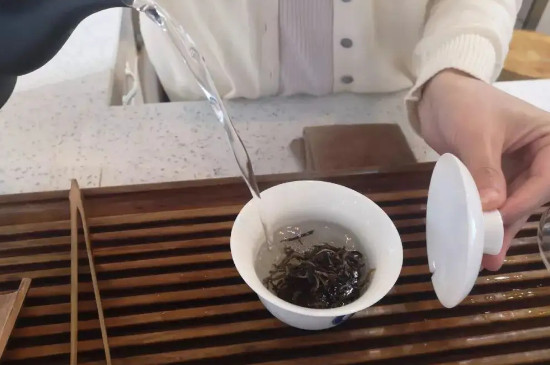 沿着茶具的边缘注入85度左右的热水,注入三分之一的高度时暂停,为了让茶叶内质充分得到激活,端起茶杯稍微欢动,此时看到茶叶逐渐变得湿润。