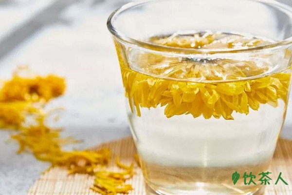 菊花茶冲泡的最佳茶水比例是1:50,也能根据自己的饮茶习惯适当增加或减少投茶量,喜欢浓茶可以适当增加投茶量,菊花茶放入茶具中,倒入没过茶叶的温开水,等待20秒将茶汤倒出,清洗干茶叶表面的杂质。