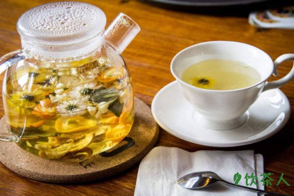 清洗后的菊花茶就能正式进行冲泡的步骤,倒入90度左右的热水,让茶具中的水量达到七八分满的状态即可,等待1分钟左右,菊花会被完全泡开,淡雅的花香味溢出,可以直接饮用也能加入适量蜂蜜进行调味。