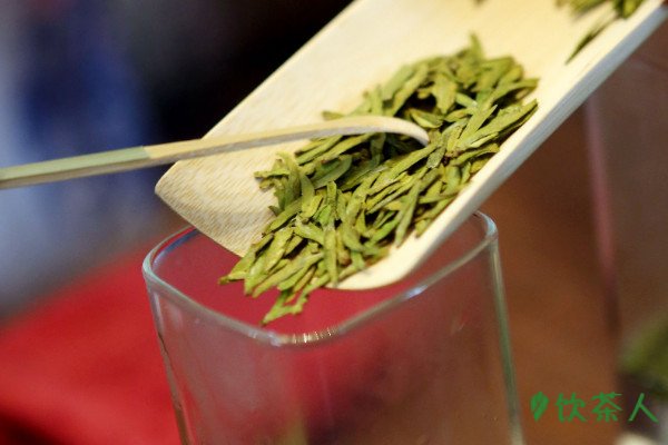 用茶匙取出龙井茶干茶叶,用250毫升的玻璃杯冲泡时,最佳投茶量是4克干茶叶,也能根据个人的喜好增减,投茶量没有明确的范围,茶叶投入玻璃杯之前倒入少量热水冲烫,然后投入茶叶注入85度左右的热水,等待1-2分钟即可饮用。