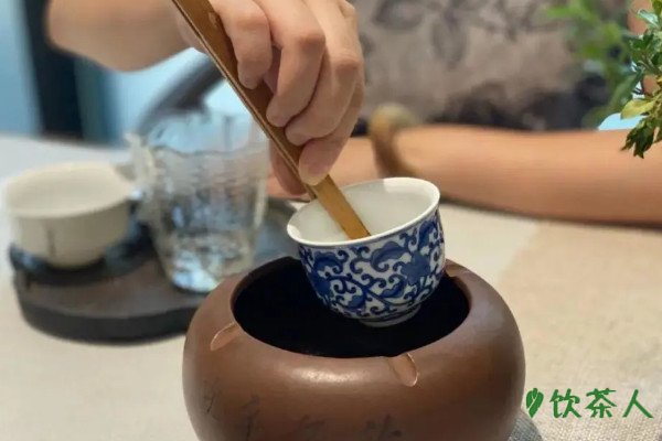 茶具冲烫后,投入醒好的砖茶茶叶,投茶量控制在7-10克左右,合适的投茶量能充分展现出茶汤的滋味,既不会过浓,也不会过淡,投入茶叶后注入沸水,用茶匙搅拌10后倒掉茶汤,然后再次倒入沸水洗茶。