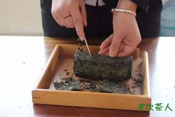 砖茶冲泡时有两个需要着重注意的地方,首先是撬茶,茶刀插入砖茶不能用力过猛,以免把整个砖茶全部弄碎,不利于存放和后期饮用,第二点就是冲泡砖茶的水温一定要是完全烧开的100度沸水,水温过低不能完全泡开茶叶。