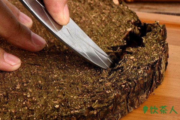 安化黑茶一般都是紧压成茶饼或茶砖,冲泡前用茶刀等工具撬茶,只需要撬下7-10克干茶叶即可,先把茶叶放在茶荷上,用茶针稍微分散,然后投入冲烫好的茶具,注入少量热水浸润茶叶,等待5秒立即把水倒出,起到清洗茶叶表面杂质的作用。