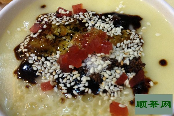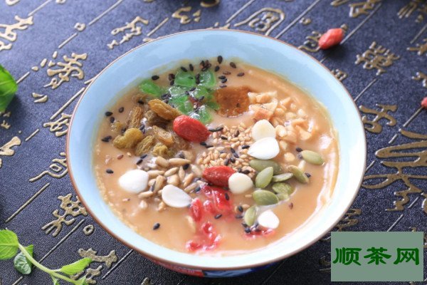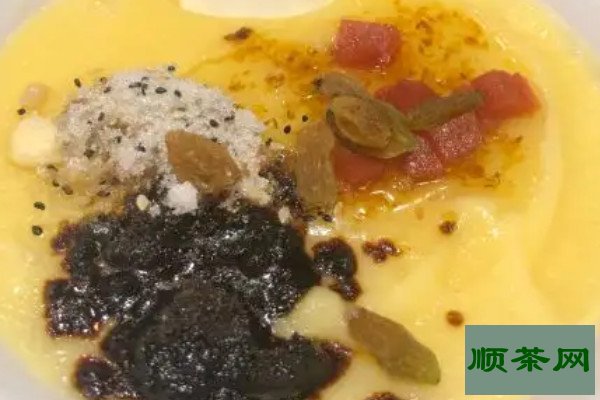茶汤冲泡好之后,加入提前准备好的糖桂花、金丝糕、青梅丁等配料,搅拌均匀之后就能食用,除了这些常规的调料之外,也能根据自己的饮食习惯加入其他的配料,例如坚果碎、花生碎、黑芝麻等。