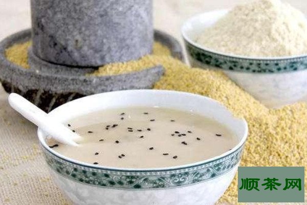 糜子粉炒好就能用来冲泡茶汤,每次冲泡时,只需要取出20-30克茶粉,将茶粉倒入干净的碗中,先加入少量冷水搅拌成糊糊,然后倒入烧开的90度沸水冲烫搅拌,需要注意的一点是,不能直接用热水冲泡,直接用热水不会变成粘稠的糊状。