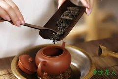 乌龙入宫:将茶叶用茶匙拨入茶壶,装茶的顺序是先细再粗后梗。