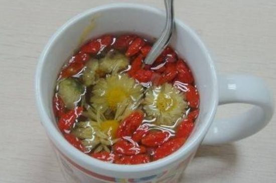 3、菊杞茶:菊花10克,枸杞子30克。将枸杞子加3~5杯水煮沸10分钟,然后放入菊花再煮2~3分钟,过滤取汁,装入保温瓶,分3~4次1日饮完。此茶可预防各种眼病和高血压、冠心病。