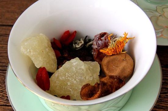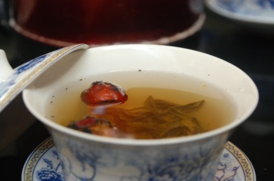 而且真正让三炮台出彩的是它的茶料,一碗上等的三炮台,茶叶以春尖茶和云南下关沱茶为最好,再配以桂圆、杏脯、葡萄干、红枣、枸杞、菊花(玫瑰)、冰糖等八种辅料。