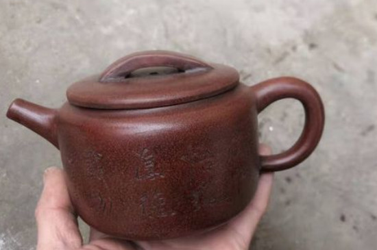 王寅春(1897-1977)的朱泥小壶与众不同,胚体圆而薄,下水平稳,出水爽,极为精巧。