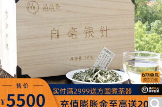福鼎白茶近几年比较火,最顶级的就是白毫银针,按照白茶一年茶三年药七年宝的宣传,年份久远的老白茶弥足珍贵。品品香是福鼎白茶的头部品牌之一,2018年的特级白毫银针,传统日光萎凋工艺,三年陈化时间,木箱包装,价格达5500元一斤。