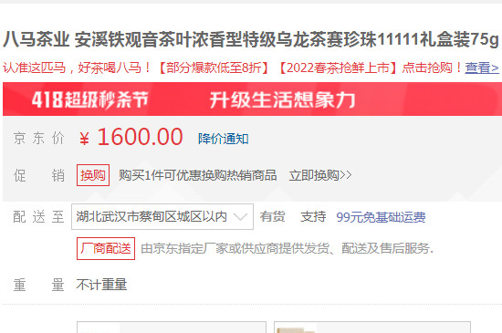 安溪铁观音铁观音是乌龙茶的极品,其形状似蜻蜓头,螺旋体,青蛙腿,冲泡后汤色金黄浓艳似琥珀,有天然馥郁的兰花香,滋味醇厚甘鲜,以观音韵著称。八马茶业是安溪铁观音的头部品牌之一,八马的赛珍珠系列从1000-3000-5800-11111差不多数字都是接近斤价的,1600元/9泡茶,喝一泡178元。
