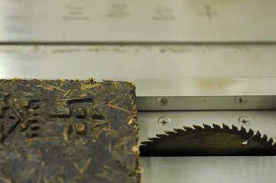 3、用无尘锯:准备无尘锯,把茶砖放到锯上,每次锯小部分,一点一点锯开茶砖即可。这是一个方便又快捷的取茶方法,但锯片锋利,使用时需要加倍小心。