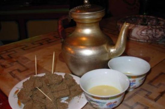 内蒙古西部地区的牧民以喝砖茶为主,东部地区的牧民以喝红茶为主。砖茶在熬的时候,可以单熬或加入其他佐料,除奶茶外还有以下几种。