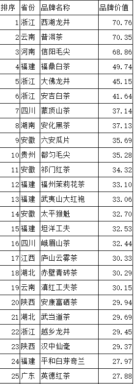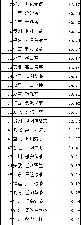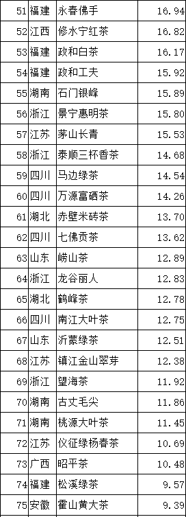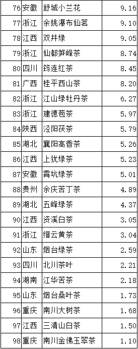 附:2020中国茶叶区域公用品牌价值评估结果(单位:亿元)