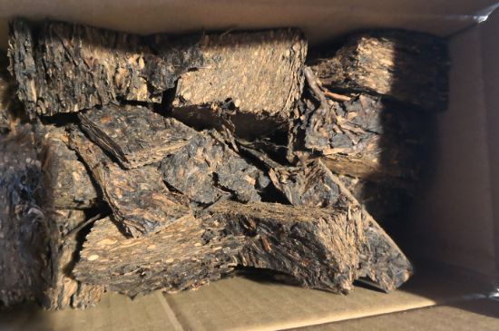 黑砖茶,因用黑毛茶作原料,色泽黑润,成品块状如砖,故名。