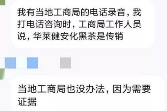 本网随便搜索一下华莱健黑茶的相关信息,都是骂声一片。而这些反对抵制华莱健黑茶的相关信息下面的评论区也有一大帮支持华莱健黑茶的死忠粉,其言论都夸大产品功效,包治百病的言论。据查,华莱健黑茶目前并未获得直销牌照,每个茶商在发展团队的时候却对外声称自己就是直销企业。
