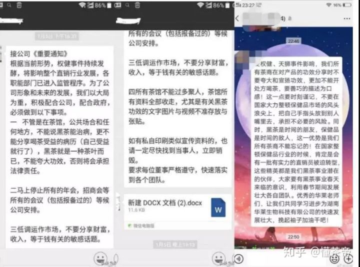 鉴于权健事件影响,华莱公司要求内部不再宣称黑茶能治病、停止招商会等所有会议、不“分享财富”、茶馆不聚集人员且不遗留宣传资料。