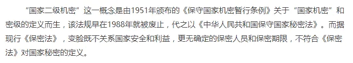 而事实的真相是:“国家二级机密”的概念早已被废止!