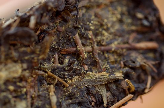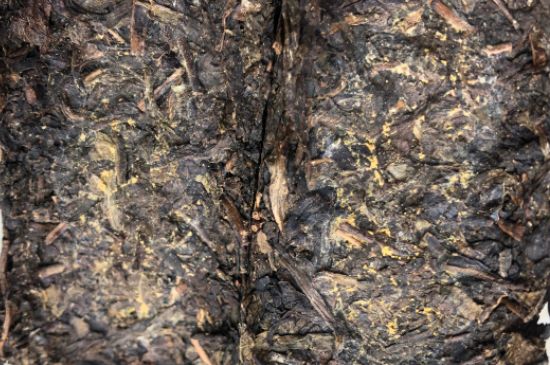 只要轻轻撬开,就能看到茶砖内生长的金花了哦。如果撬开内部仍没有金花,那就无疑是品质问题了。