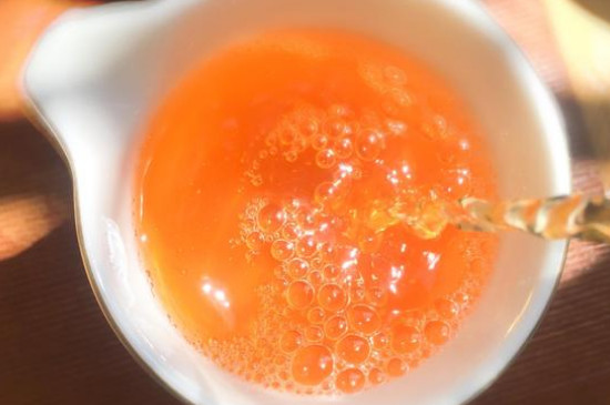 4、滇红金针的茶汤是金红色的,清澈明亮,非常好看,并且香气高长、带有花香,滋味浓厚、回味鲜爽,香中带甜,叶底红匀明亮。