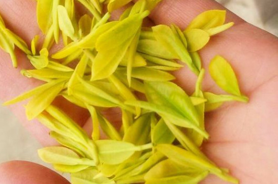 安吉黄金芽茶叶片颜色随气温的变化而变化,黄—玉黄—黄—绿。