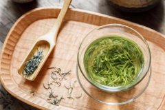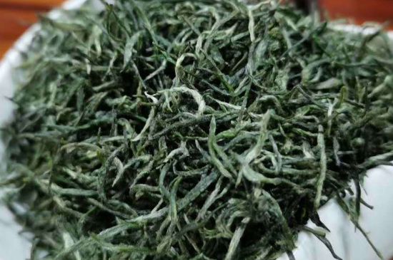 2、信阳毛尖标准有鲜叶的芽叶标准和成品品质两套标准,芽叶标准以含芽量多少评级,除珍品级要求单芽率高于85%外,其他评级均不要求单芽。特级信阳毛尖要求其条索细圆紧尚直,色泽嫩绿显白毫,匀整且净度高。