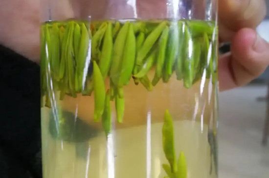 【品质特征】外形紧直细秀,色泽鲜润翠绿,芽叶披毫露锋,汤色碧绿澄清,香气馥郁高长,滋味鲜醇回甘,叶底嫩黄明亮的特点,以形秀、叶绿、汤清、味醇的特点独领风骚。