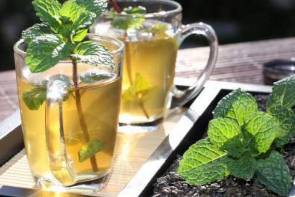 绿茶也能搭配薄荷一起饮用,只不过需要加入适量的蜂蜜和冰块,绿茶用沸水冲泡好,把茶汁滤出备用,先在空杯子中放入冰块,加入薄荷、蜂蜜,最后把绿茶茶汤倒入杯中即可饮用。