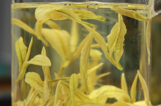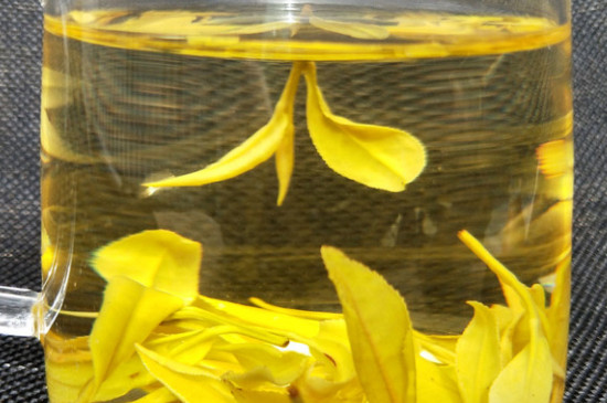 黄金叶茶叶用95度左右的开水冲泡时,茶叶会在水中逐渐舒展,茶叶变为晶莹剔透的玉黄色,在水中飘散仿佛翡翠起舞,颗颗金枝独立,茶汤的颜色成明亮的嫩黄色,此时黄金叶茶 的独特性被发挥到至纯至美。
