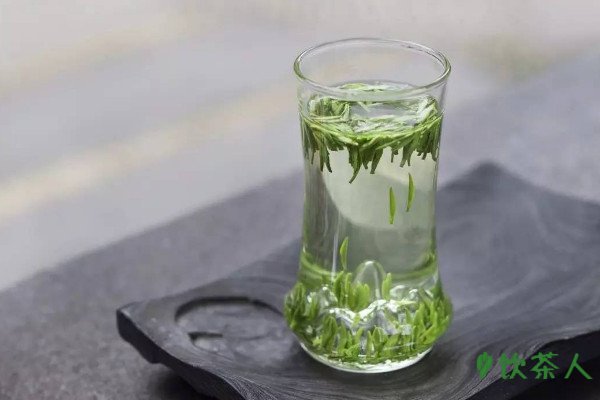 绿茶干茶叶投入玻璃杯后,注入85-95度至今的热水,先注入三分之一,让茶叶完全被热水浸润,稍微舒展后继续注水至七分满,不需要盖上盖子,等待1-2分钟茶叶完全舒展,茶汤颜色变为透彻的嫩绿色,散发出浓郁的茶香。