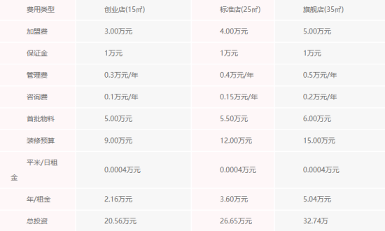 这里以一个10平米的门店为例。假设门店在省会城市,加盟店的成本,包括租金、人员工资、水电费、流动资金等成本,加起来这些成本,大概要8~10万元。