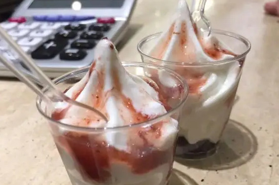 非常简单。草莓酱一大勺,加入自制酸奶一杯,草莓四只切半,摆一圈。