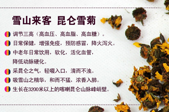 昆仑雪菊主要有三种,分别是高山昆仑雪菊,种植在高海拔地区;平原雪菊,种植在低海拔地区;大棚雪菊,是在温室中生长起来的雪菊。在高山昆仑雪菊中,以产自新疆克里阳地区的品质最佳。市场上的昆仑雪菊品牌有很多品牌,那么昆仑雪菊哪个牌子正宗呢,今天顺茶网来分享一下昆仑雪菊四大品牌。