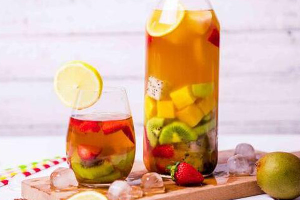 综合水果茶的用料非常丰富,可以根据自己的口味选择喜欢的水果,例如西瓜、苹果、菠萝等,准备一个柠檬和红茶茶包,将水果切成大小合适的块状,与茶包一起放入准备好的茶具中,倒入温开水一起浸泡,夏季高温时可以先冷藏。