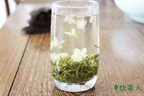 茉莉花茶是花茶中比较常见的种类,冲泡饮用时,选择透明的玻璃杯,按照茶水1:50的比例投茶,投入茶叶后沿着边缘注入90度左右的热水,等待3-5分钟即可出汤,茶汤温度降到适宜时饮用。