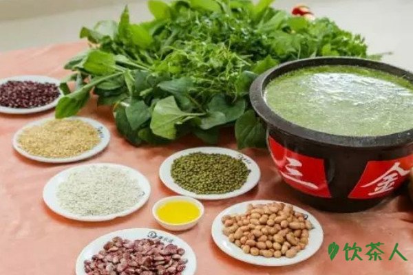 素擂茶的配料则比较清淡,除了用茶叶、熟花生粒、玉米粒等材料之外,还能加入绿豆、糯米饭、粉干以及地瓜粉条等,相比荤擂茶更加清淡,不过荤素擂茶中的材料主要因为函数季节的不同进行搭配,夏季温度较高,一般选择素擂茶,冬季需要提供充足的热量,通常选择荤擂茶。