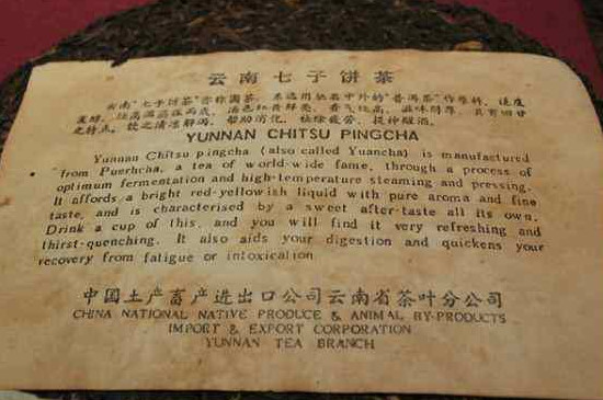 此时普洱茶饼包装不再印上“中国茶叶公司”字号,改由各茶厂自行生产,统称“云南七子饼”,如雪印青饼,73青饼,大口中,小黄印,88青饼等。